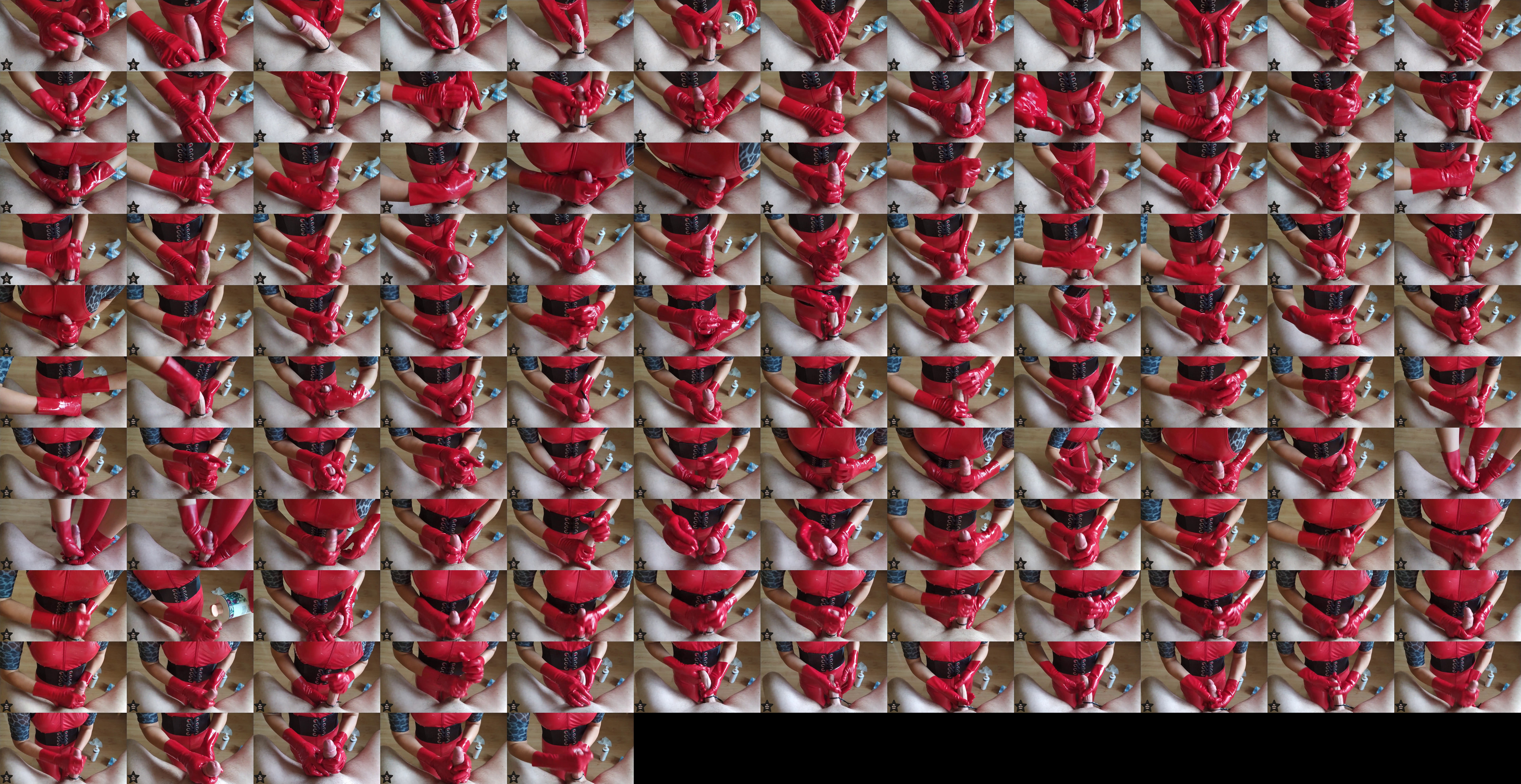 Handjob With Red Latex Gloves