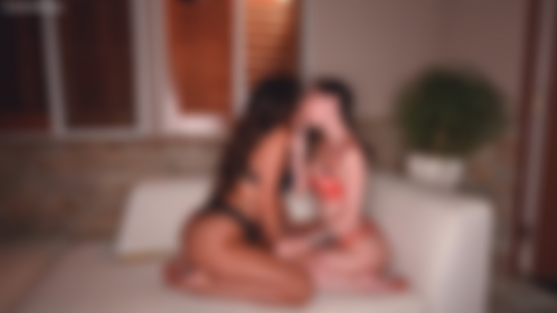The video features a live threesome taking place in a new sunroom setting, despite being filmed at night. The participants include two females and one male.
