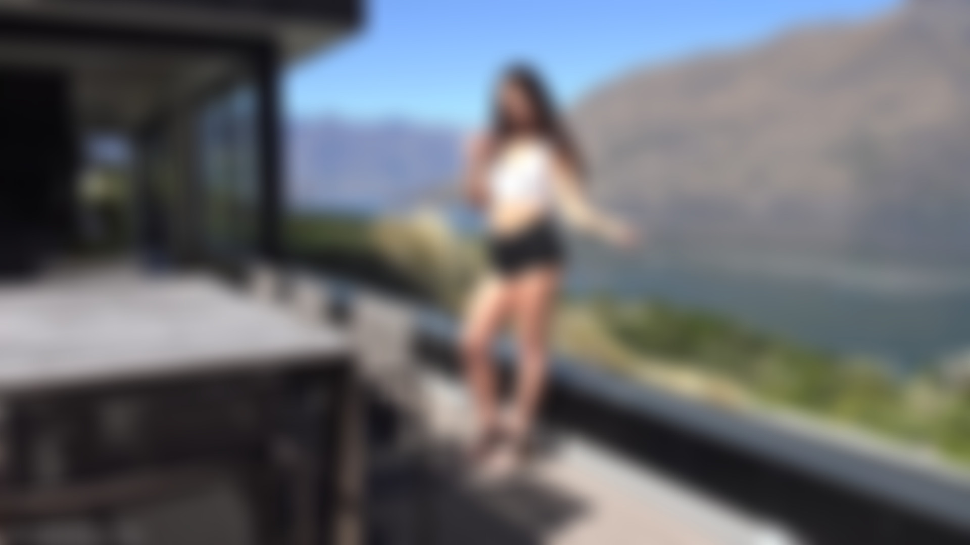 Lily poses in her black jean shorts on a deck with a particularly scenic background. There&s an especially nice segment of boob tease before the attention returns her her jean shorts and then lacy pink panties. We get a bit more full body shots than usual in this clip which is perhaps appropriate considering the excellent location.
