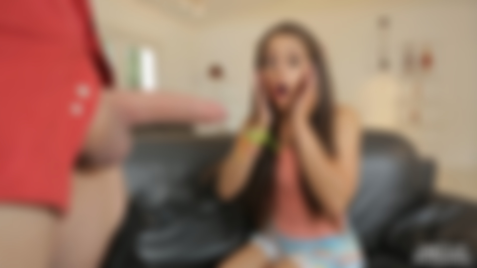 Ziggy is horny and begins to tease her friends dad, she leans back on the couch and puts her ankles behind her head showing her panties that barely cover her little pussy. She convinces him for more and she begins sucking his cock, working it in her pretty mouth, lots of deep sucking as she takes his cock down her throat in several (some difficult) positions....this girl is flexible!!! All ending with a facial across her beautiful teen face